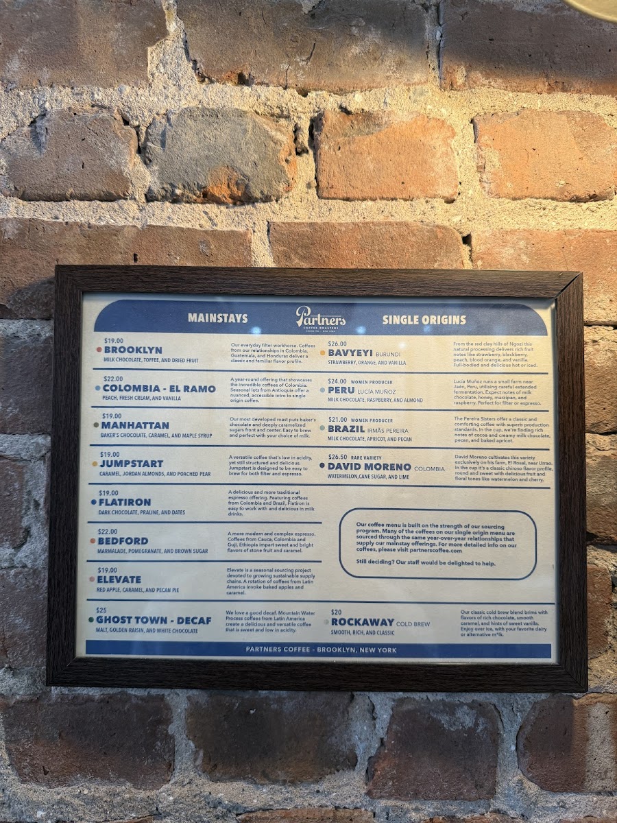Partners Coffee is a delightful spot nestled in Long Island City, celebrated for its high-quality coffee and inviting ambiance. Renowned for its expertly crafted drinks, like the delicious quad cortado and refreshing iced vanilla lattes, it provides a perfect haven for coffee enthusiasts. Patrons rave about the decadent pastries, particularly the rich chocolate chip cookie, making it an ideal breakfast destination. The rustic charm of exposed ceilings and a quaint patio, free from laptops on weekends, invites relaxation and good company. Though the service may occasionally lack warmth, the overall experience is elevated by the cozy atmosphere and flavorful offerings.