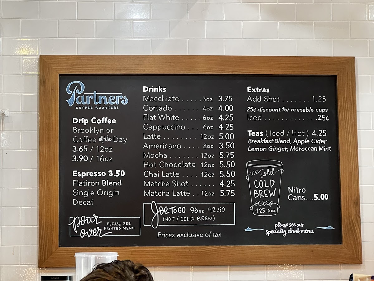 “ Ambiance: 5/5 Morning at Partners Coffee was calm, perfect for reading a book. The music wasn't too loud, and the windows provided great natural light. The seating was comfortable and welcoming. Customer Service: 3/5 The service was fine, nothing to complain about, but it wasn't exceptional. A little more warmth or attention could have made the experience stand out more. Quality of Drinks: 5/5 I tried the seasonal Orange Cardamom Latte, which tasted like a holiday chocolate orange--sweet but delicious. I've also had their cappuccinos and instant coffee before, and all of it was high-quality, great-tasting coffee. They really know how to do coffee here. Value for Money: 4/5 The two lattes came to $18 with tips, which is a bit steep. It's definitely on the pricier side, but for the quality and experience, I'd say it's worth it as a special treat. Overall Experience: 5/5 A solid 5-star experience overall. I'd definitely return to enjoy their drinks, especially the seasonal offerings. Highly recommend as a cozy spot to relax with great coffee! ”
